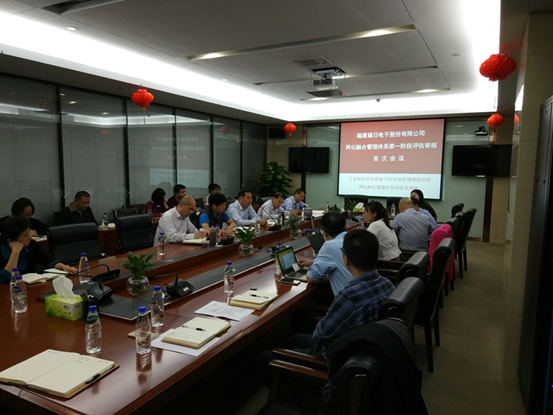 2017年1116日,工業和信息化部電子科學技術情報研究所兩化融合管理體系審核專家組對福建福日電子股份有限公司進行兩化融合管理體系貫標認證第一階段評估審核。福日電子溫春旺總裁、蔡登峰副總裁、本部各部門負責人、福建省企業兩化融合促進會相關負責人、福建尚融智聯信息科技有限公司兩化融合管理體系咨詢團隊成員等參加了審核會議。