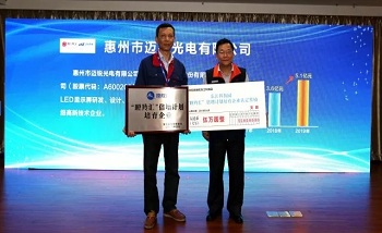2018年4月18日,東江科技園“瞪羚匯”倍增計(jì)劃啟動暨首批培育企業(yè)授牌儀式在惠州市舉辦,園區(qū)管委會領(lǐng)導(dǎo)及各相關(guān)部門負(fù)責(zé)人、園區(qū)企業(yè)主要負(fù)責(zé)人等約100多人參加本次活動。福日電子成員企業(yè)惠州市邁銳光電有限公司等13家企業(yè)入選“瞪羚匯”倍增計(jì)劃培育企業(yè)。惠州邁銳常務(wù)副總經(jīng)理陳曉斌上臺領(lǐng)取了培育企業(yè)牌匾和培育經(jīng)費(fèi)支票。