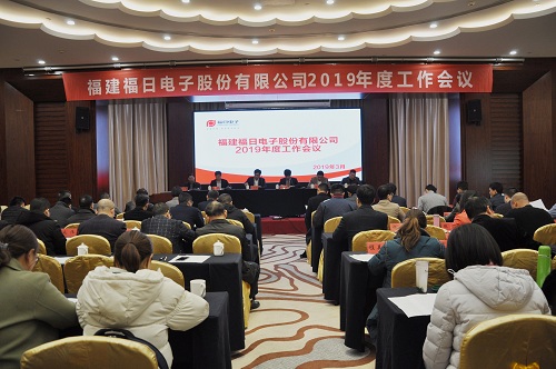 2019年3月7日-8日,福建福日電子股份有限公司在福州市召開(kāi)2019年度工作會(huì)議。公司經(jīng)營(yíng)班子成員,本部各部(室)負(fù)責(zé)人,各成員企業(yè)、事業(yè)部主要負(fù)責(zé)人及代表,參股企業(yè)產(chǎn)權(quán)代表及派出財(cái)務(wù)負(fù)責(zé)人等共計(jì)80多人出席會(huì)議。