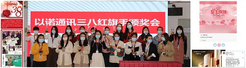 源磊科技、邁銳光電、以諾通訊等成員企業(yè)也通過贈送賀卡鮮花、線上有獎留言點贊、三八紅旗手頒獎會等活動為女職工送上節(jié)日的祝福。