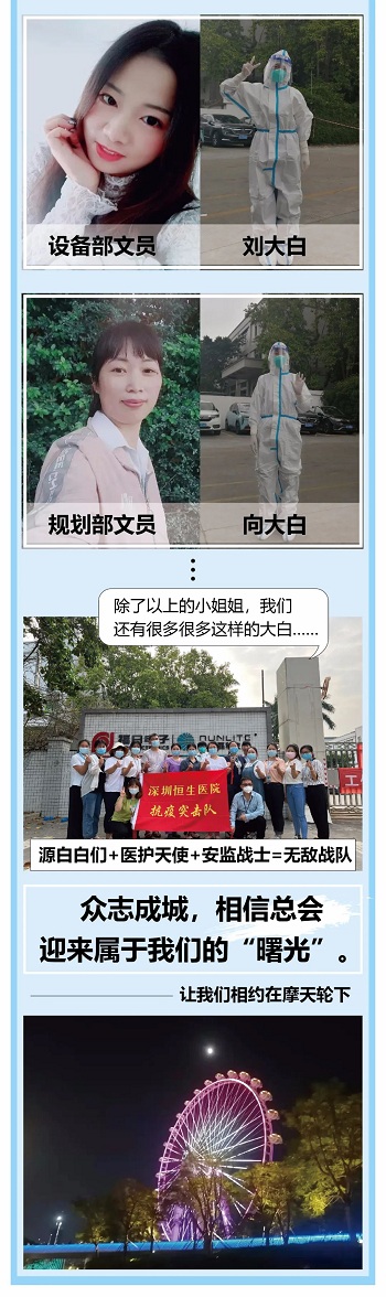 無獨有偶,源磊科技也用“微光聚愛”。從2月26日至3月22日,在其中的13個日子里,源磊科技的16名志愿者“逆行”奔赴防疫前線,配合當地有關部門開展消毒、核酸檢測等工作。無論驕陽似火,亦或刮風下雨,這群“大白”們都堅守在志愿服務一線。正如他們所說,疫情當前,他們從不缺席,迎接美好四月天是他們堅持的動力。