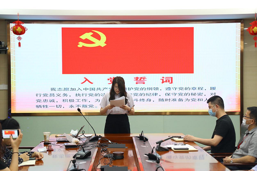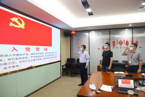 活動中,黨員代表和預備黨員代表分別重溫了入黨志愿書,講述了自己加入中國共產(chǎn)黨的心路歷程。“我志愿加入中國共產(chǎn)黨,擁護黨的綱領(lǐng),遵守黨的章程……”在莊嚴肅穆的氛圍中,全體黨員在王忠偉書記帶領(lǐng)下,舉起右手重溫入黨誓詞。這是初心使命的再宣誓,接續(xù)奮斗的再出發(fā)。