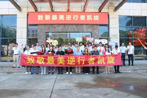 為歡迎公司海外銷售人員凱旋,8月16日,致敬最美逆行者為主題,公司成員企業邁銳光電舉行歡迎儀式,慰問感謝從美國歸來的公司副總經理曾光明帶領的海外銷售團隊