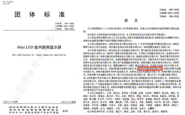 T/SLDA 007—2022《Mini LED室內商用顯示屏》團體標準在2022年11月15日已發布并且正式實施。該標準研制了Mini LED室內商用顯示屏各項要求,為產品技術創新和提升產品質量水平給出了標桿。邁銳光電作為該標準的起草單位,在積極引導行業走向標準化和規范化的同時,強化標準“硬約束”,保障產品高品質,目前公司推出的Mini LED系列產品已為多個運用場景提供技術解決方案及優質的產品服務。