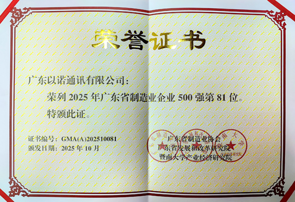 近日,在“2025年廣東省制造業500強企業峰會”上,福日電子成員企業以諾通訊憑借堅實的產業基礎與穩健增長的業績表現,成功入選“2025年廣東省制造業企業500強”,位列第81位,較去年提升14位,展現出公司在高質量發展道路上的強勁勢頭與日益突出的行業影響力。
